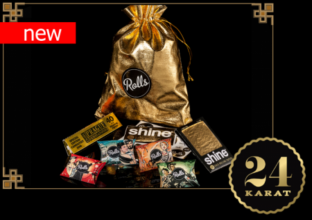 Praktický balíček, vhodný jako dárek, zabalený ve zlatém sáčku.